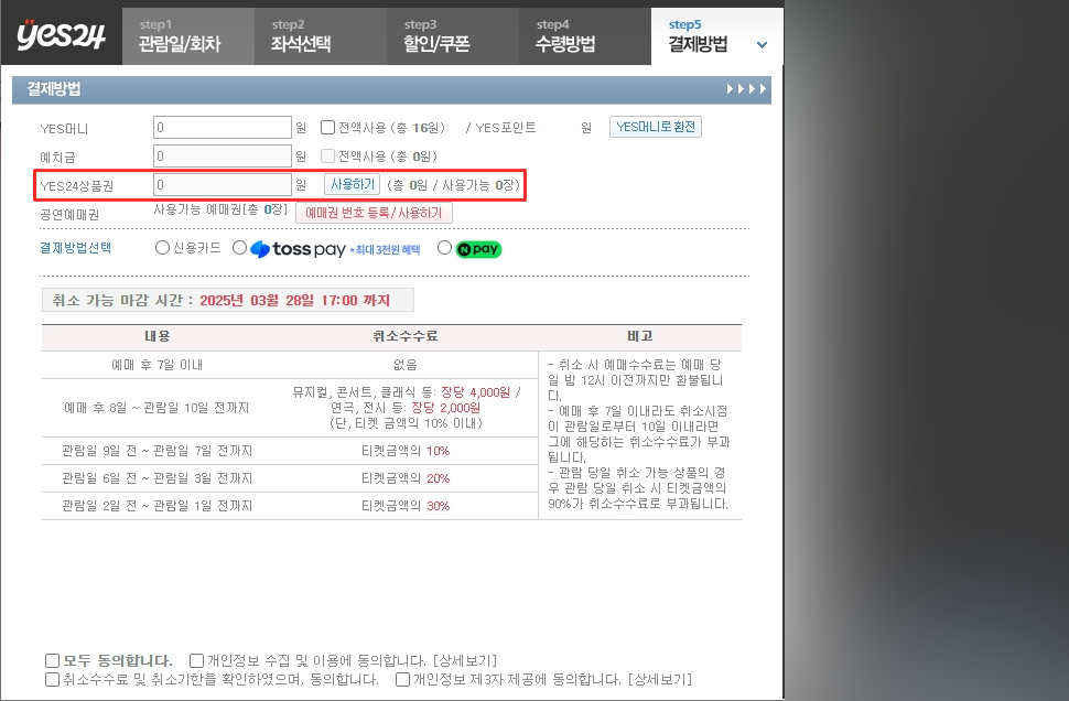 - YES24 티켓 누리집 : 마이페이지→나의 계좌 →YES상품권